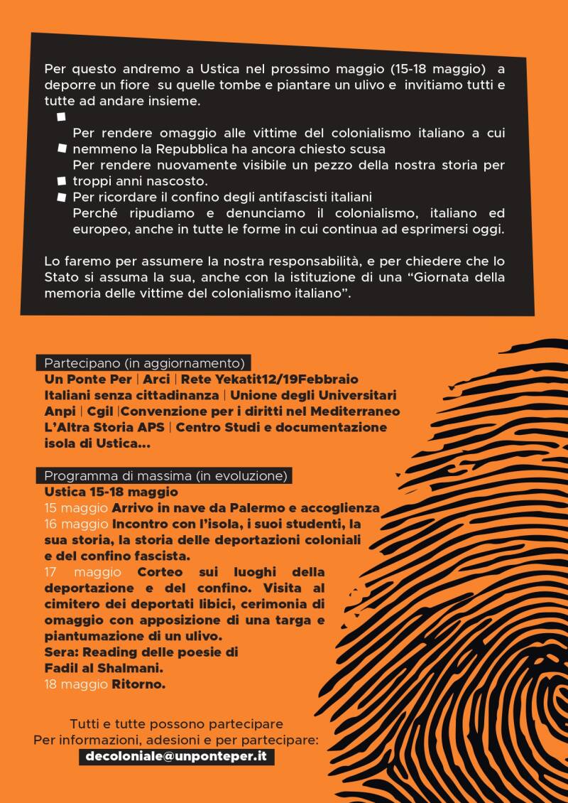 Per ricordare il confino degli antifascisti italiani Perché ripudiamo e denunciamo il colonialismo, italiano ed europeo, anche in tutte le forme in cui continua ad esprimersi oggi.